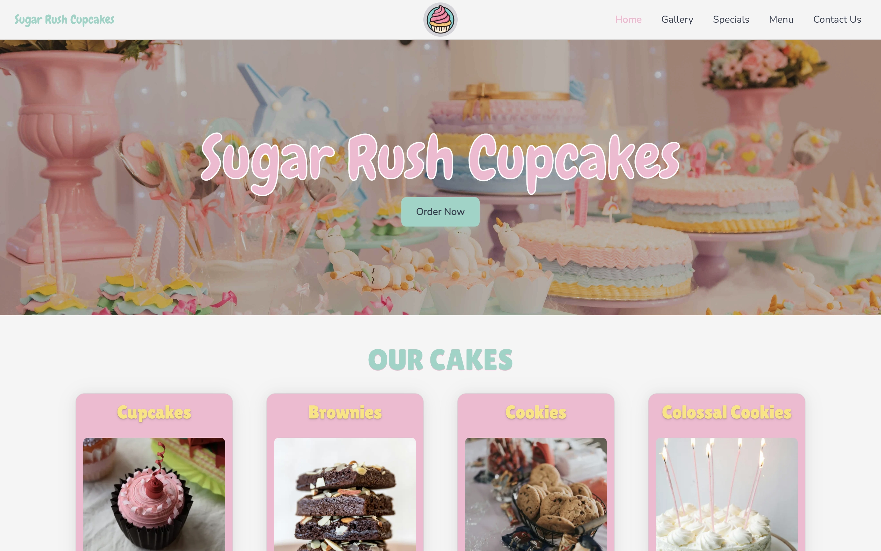 A growth website themed after a cupcake shop. It emphasizes mood and color schemes to pull customers in. Branding is important to remain memorable and communicate your message visually. It is designed to house product photos in an aesthetically pleasing manner.