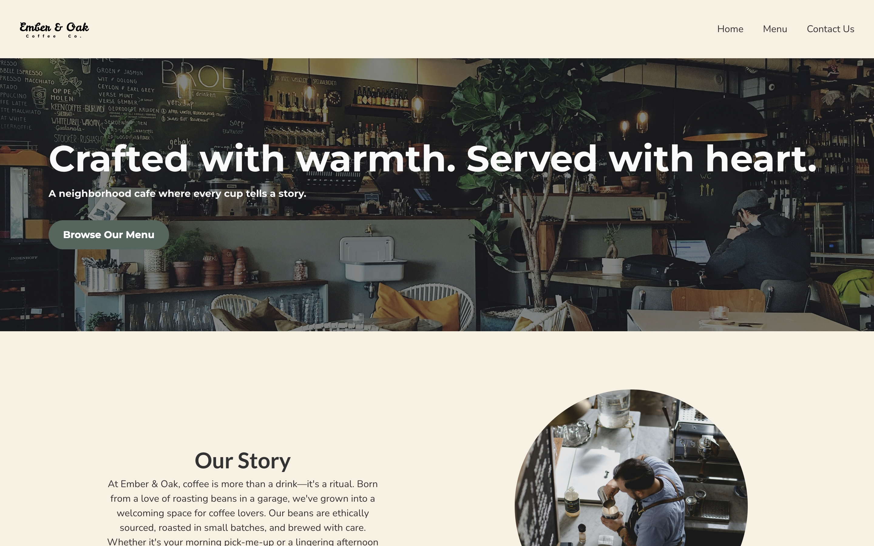A growth website example. Themed after a fictional coffee shop, this site is designed to present a production-ready website for a local small business. Growth websites segment data across webpages to ensure customers are not overloaded with infinite scrolling