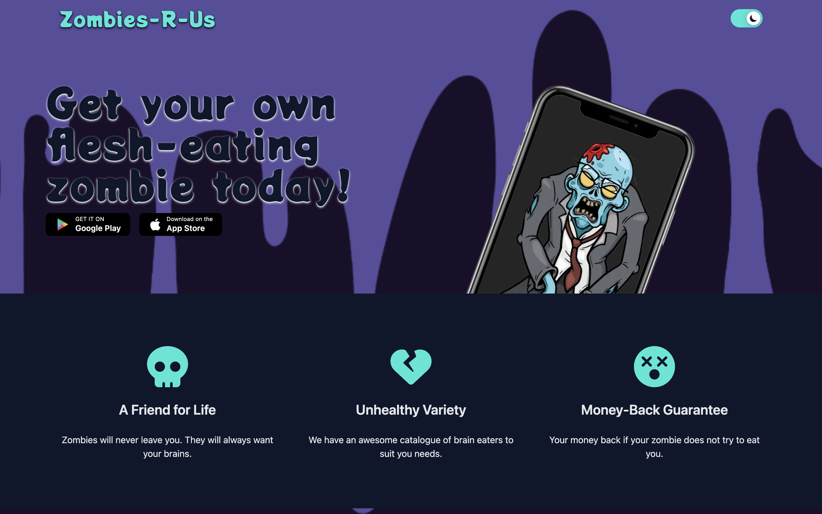 Zombies-R-Us App Landing Page